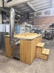Комплектація:1. Купіль з нержавіючої сталі.2. Міцний каркас із нержавіючої квадратної труби.3. Внутрішнє оздоблення (на вибір):- ясен камерної сушки (шліфований і просочений захисним засобом у прозорому або кольоровому варіанті),- осмалений ясен (глибокий чорний відтінок) +2000 грн,- термоясен (теплий натуральний колір) +3000 грн.4. Інтегрований котел із нержавіючої сталі з топочною камерою 630 мм.